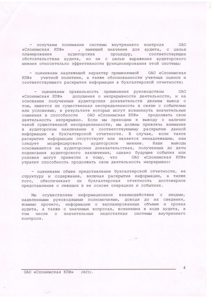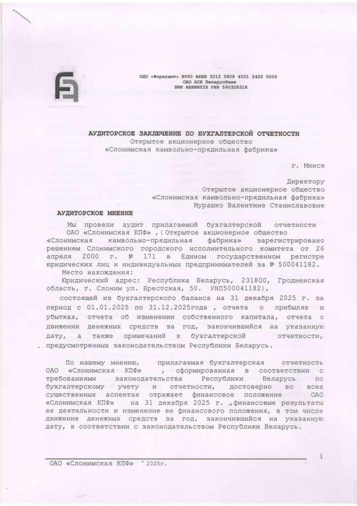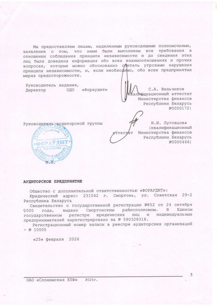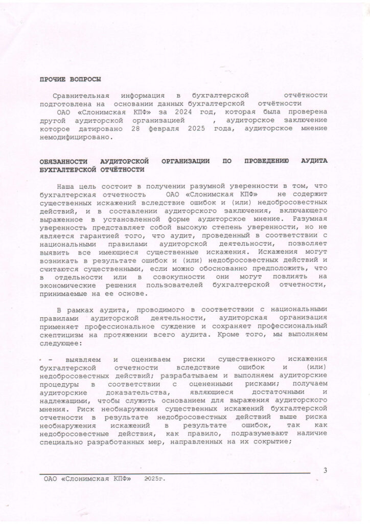 Годовой отчет ОАО «Слонимская КПФ» за 2024 год