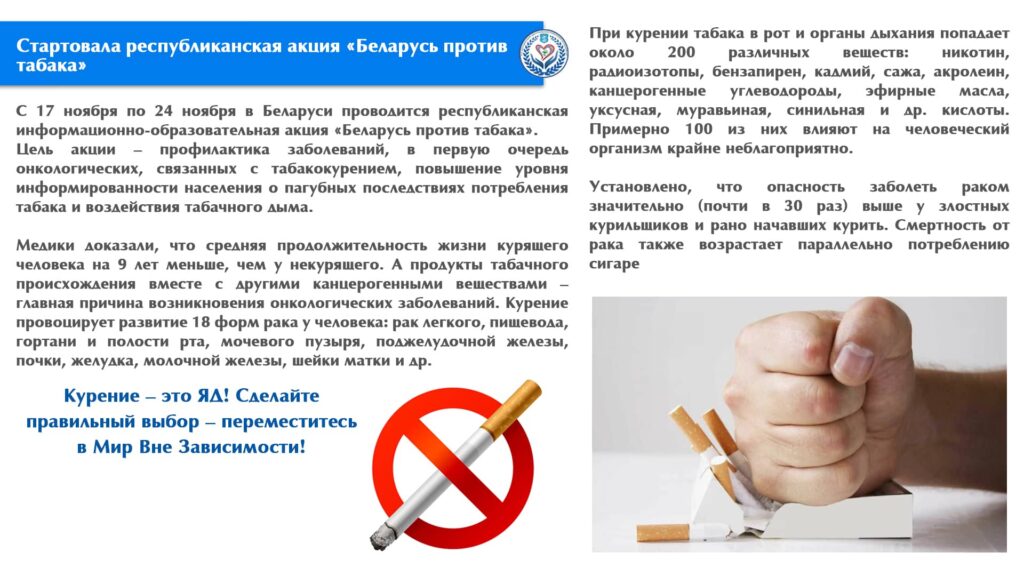 Антитабачная акция «Беларусь против никотина – время вдохнуть по-настоящему»